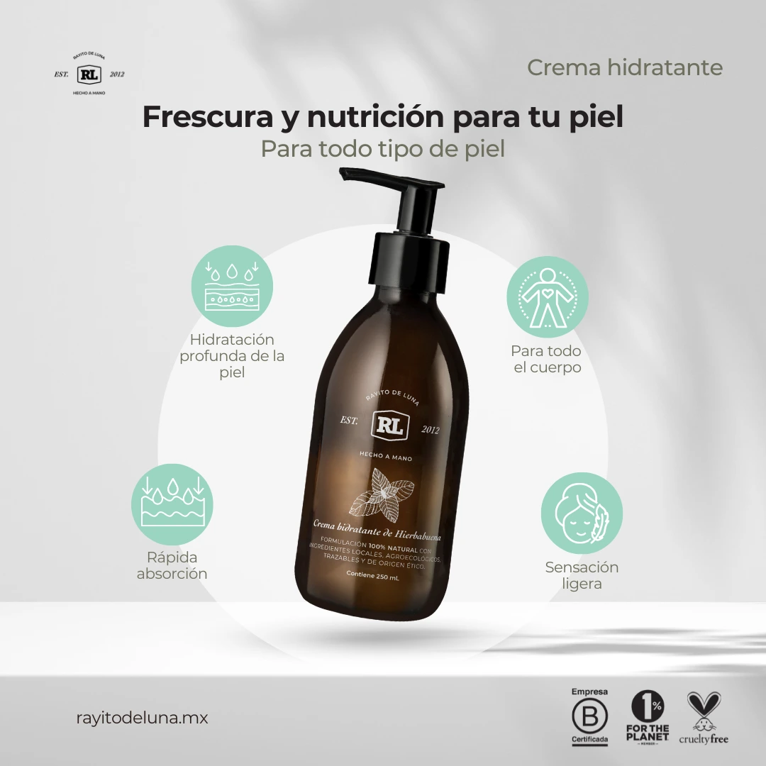 CREMA HIDRATANTE DE HIERBABUENA 250ML | HIDRATACIÓN PROFUNDA Y FRESCURA NATURAL